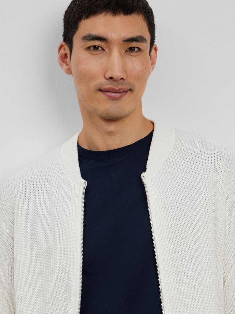 Vrstvenie so štruktúrou: kardigán, košeľa a džínsy v redukovanej farebnej schéme. Pre vzhľad s modernou ľahkosťou.