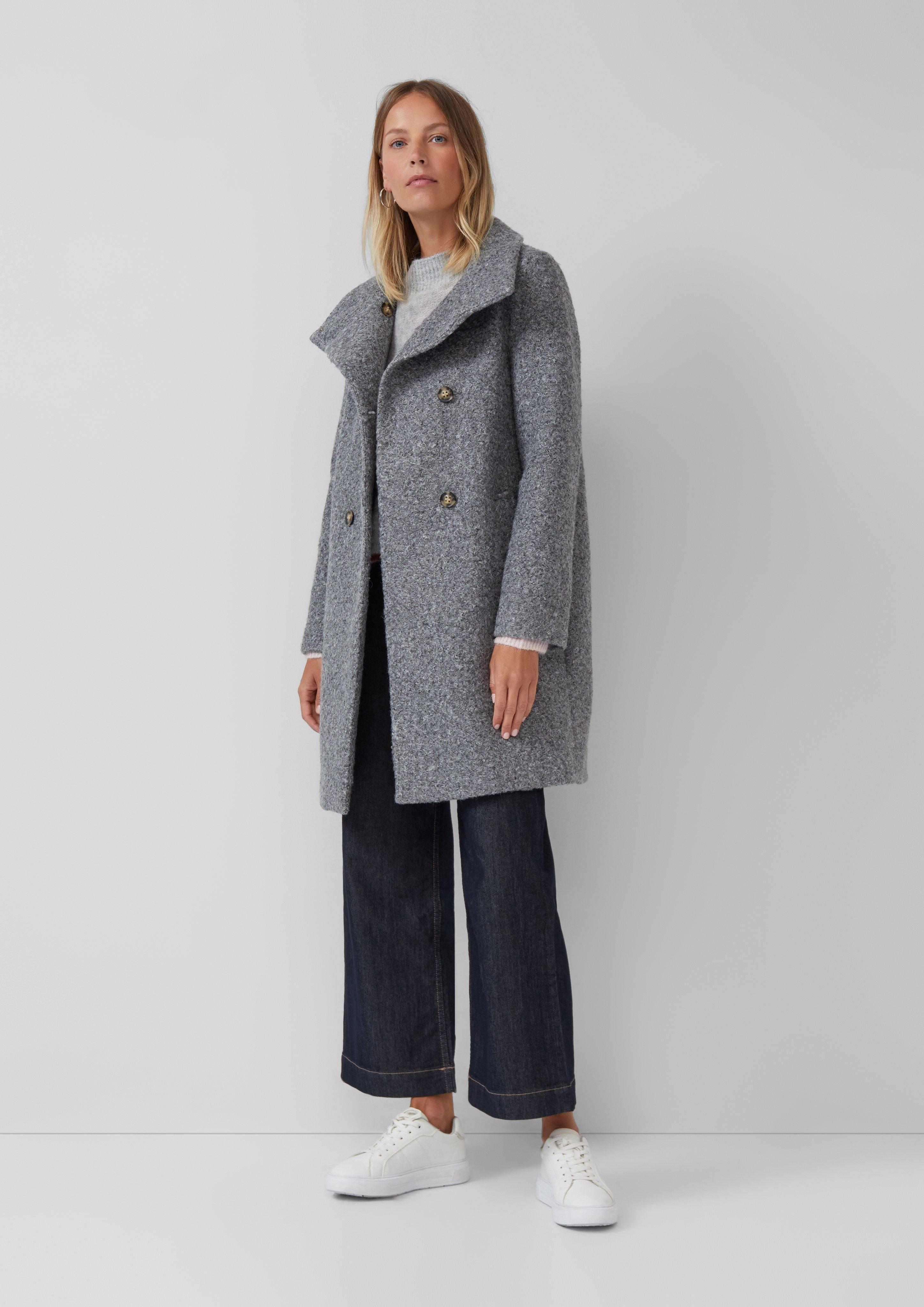 Kabát z bouclé s podšívkou a stojatým golierom