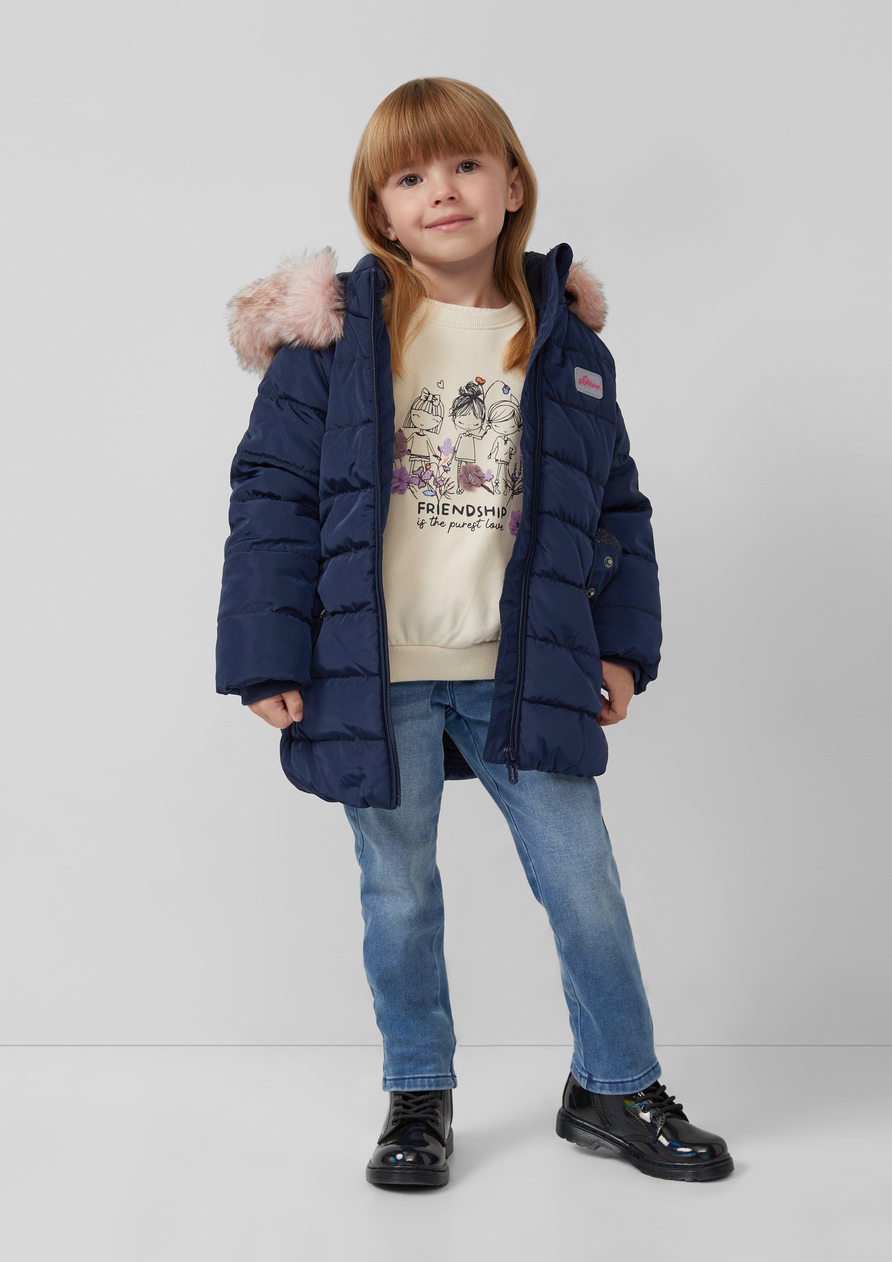 Udržujte svoje dieťatko v teple a štýle s týmto polstrovaným kabátom s trblietavým pásom a odnímateľnou kapucňou. Flísová podšívka a syntetická výplň poskytujú príjemné teplo, zatiaľ čo vodeodolná tkanina je ideálna na vonkajšie dobrodružstvá. Praktické vrecká na zips a elastické manžety dodávajú tomuto očarujúcemu zimnému kabátu pohodlie.