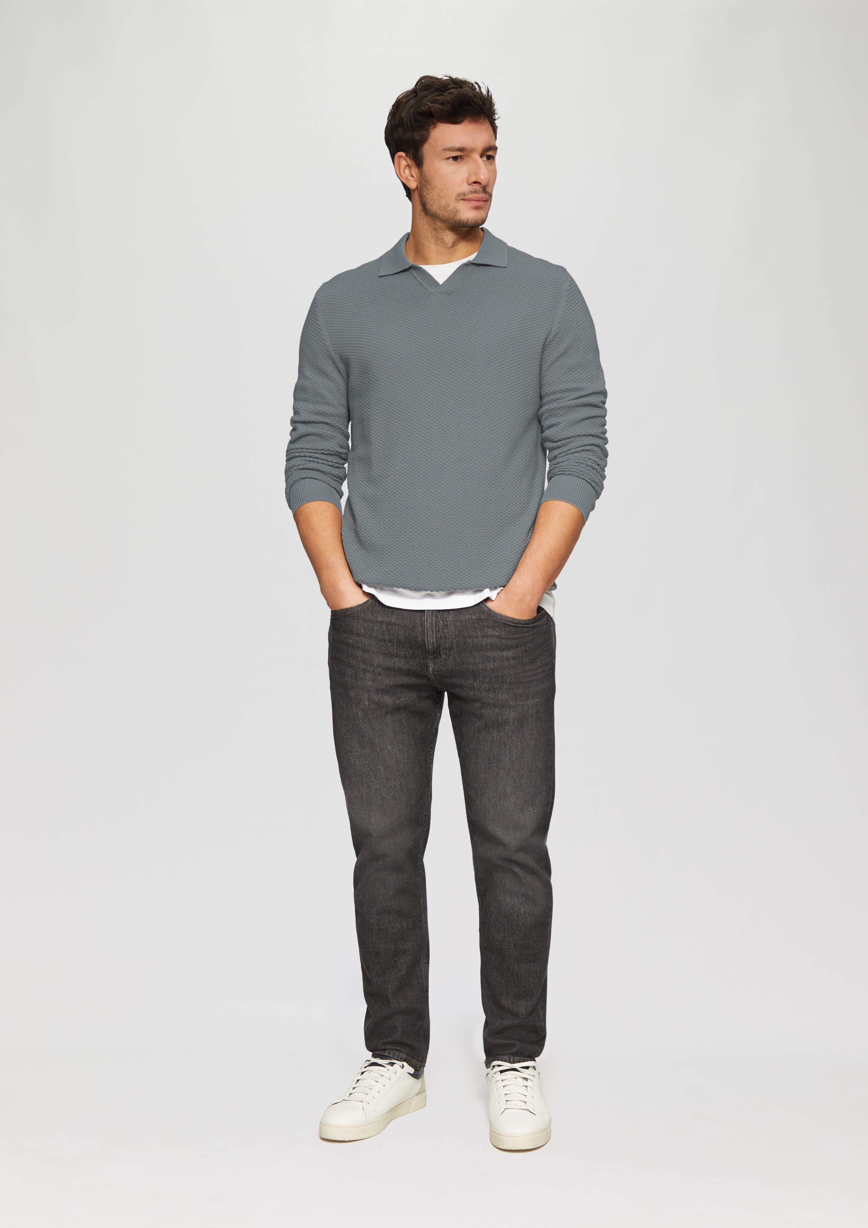 Štruktúrny pletený pulóver s pólo golierom