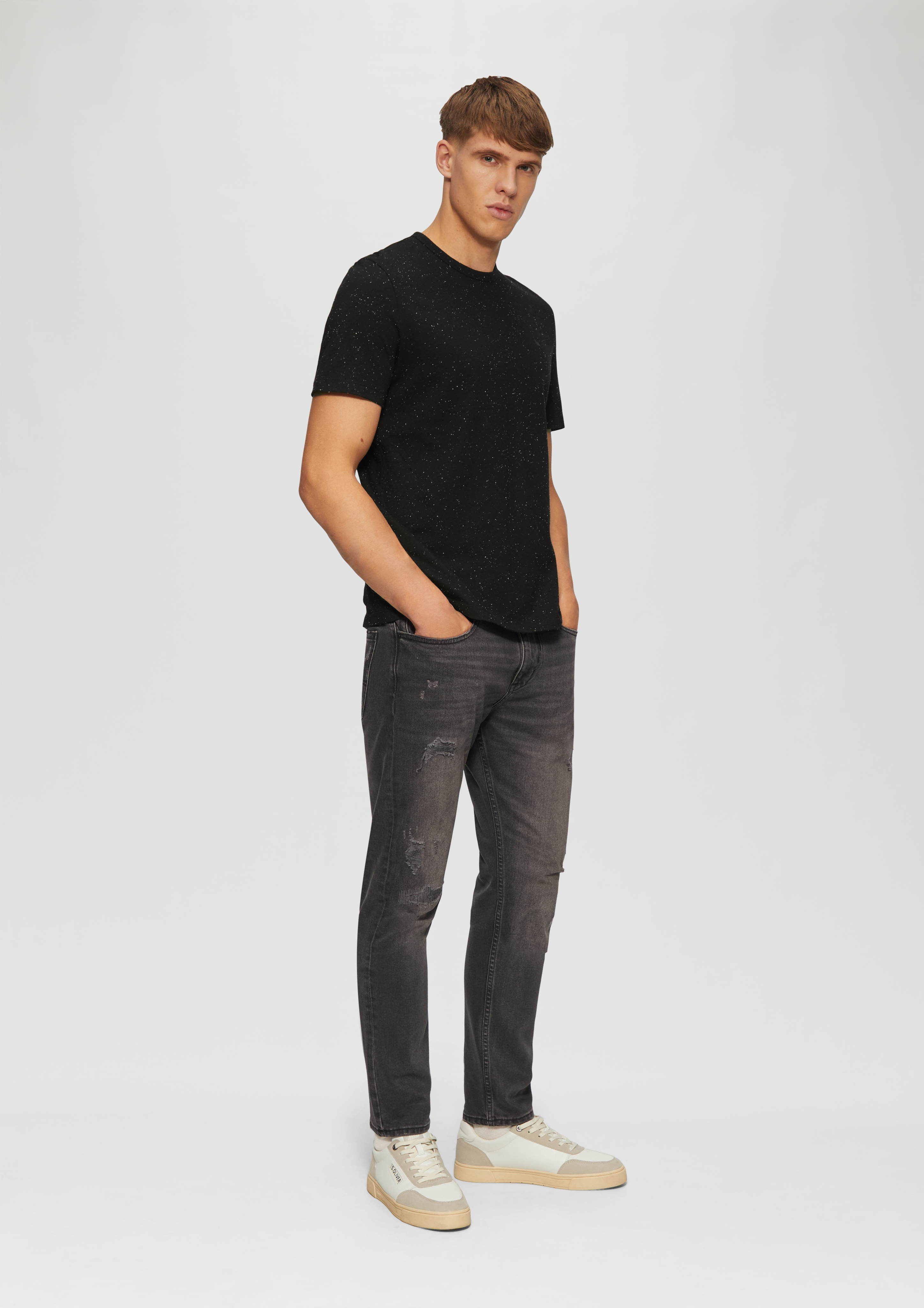 Máte chuť na univerzálny základ šatníka? Toto klasické tričko s výstrihom je vaším základom pre štýl bez námahy. Vďaka pohodlnej džersejovej tkanine a regular strihu je ideálne na bežné výlety alebo lenivé víkendy. Jemná potlač loga dodáva tričku nádych sofistikovanosti. Navrstvite ho pod sako, aby ste pôsobili elegantne, alebo ho skombinujte s džínsami, aby ste pôsobili uvoľnene. Vaše nové obľúbené tričko čaká!